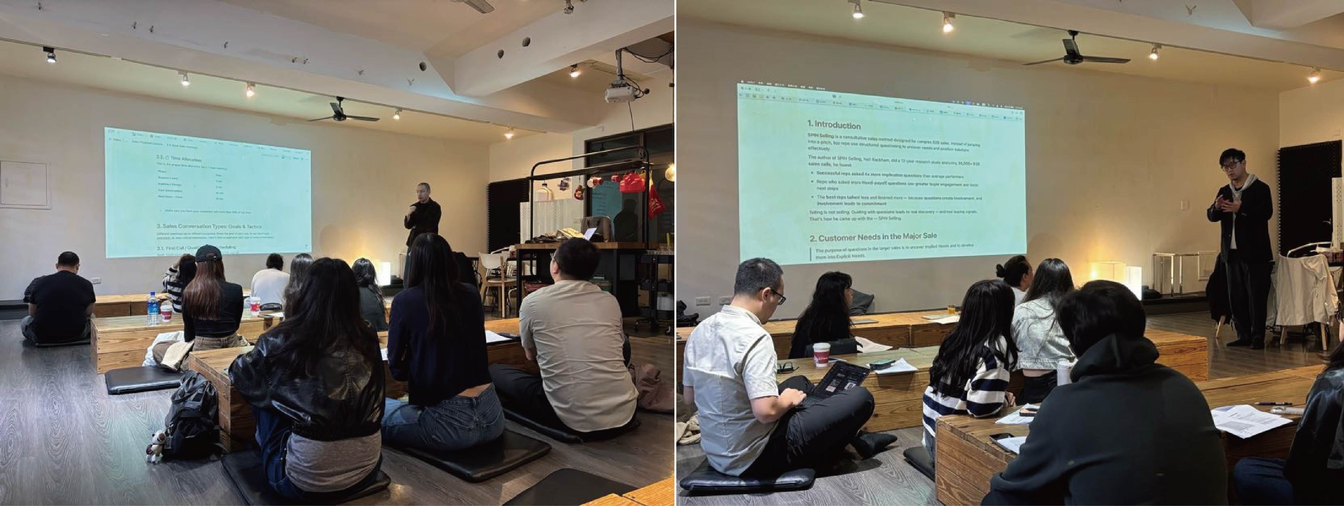 在 Sales Training 中,每一次的角色演練與團隊討論,都讓夥伴慢慢熟悉專業的銷售思維,學會如何在真實互動中提問、傾聽與理解。